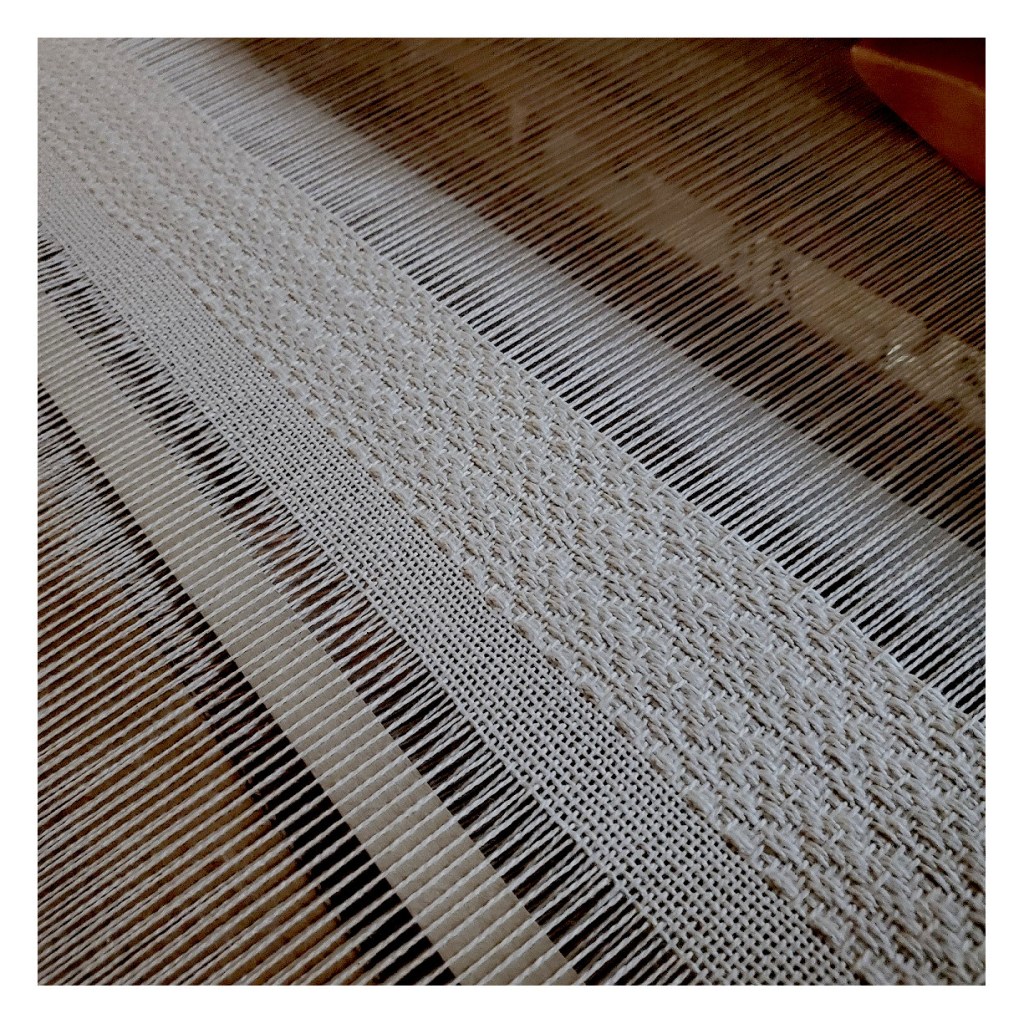 Weaving width 45″, 4 shaft floor loom, 12 epi, cotton from India