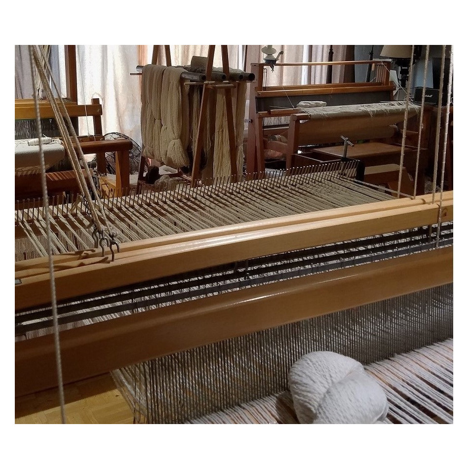 Weaving width 45″, 4 shaft floor loom, 12 epi, 3/2 cotton from the USA