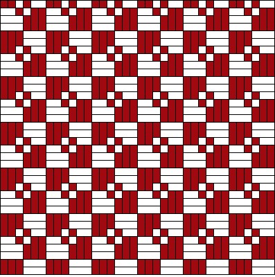 This is the same draft (pattern) that I wove for the children in the hospital. The difference is that I am using two shuttles, one with 3/2 cotton and the other with 5/2 cotton