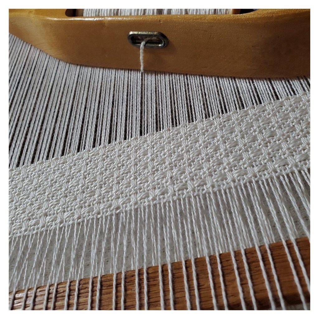 Weaving some baby blankets for market.Natural cotton, grown and spun in Georgia, USA