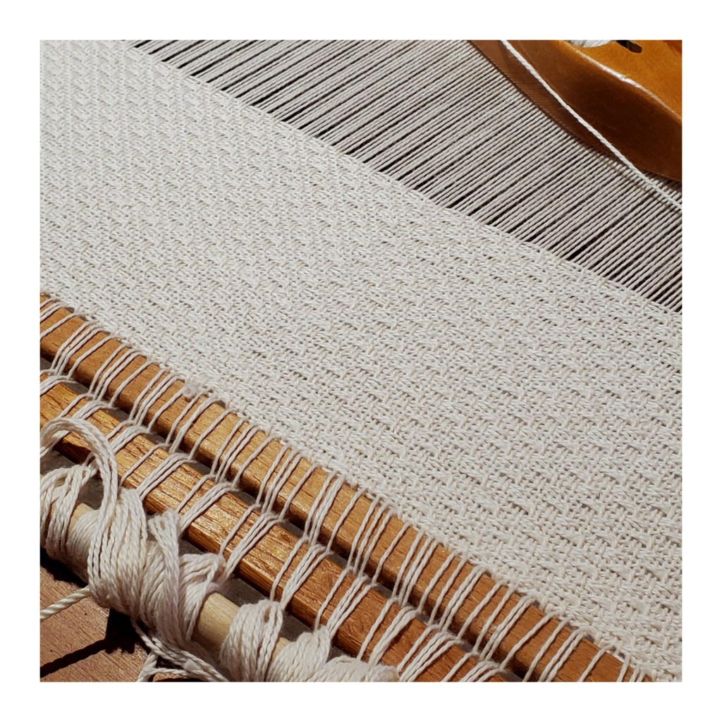 Weaving width 45″, 8 shaft floor loom, 12 epi, 5/2 & 3/2 cotton from the USA