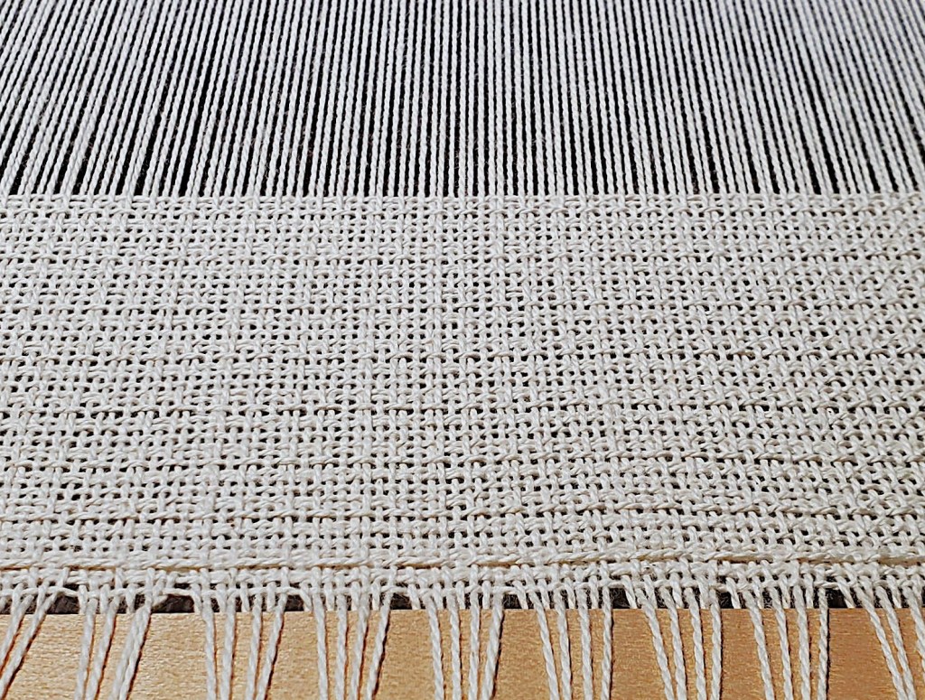 Weaving width 60″, 4 shaft floor loom, 12 epi