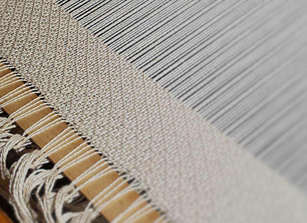 Weaving width 60″, 4 shaft floor loom, 12 epi