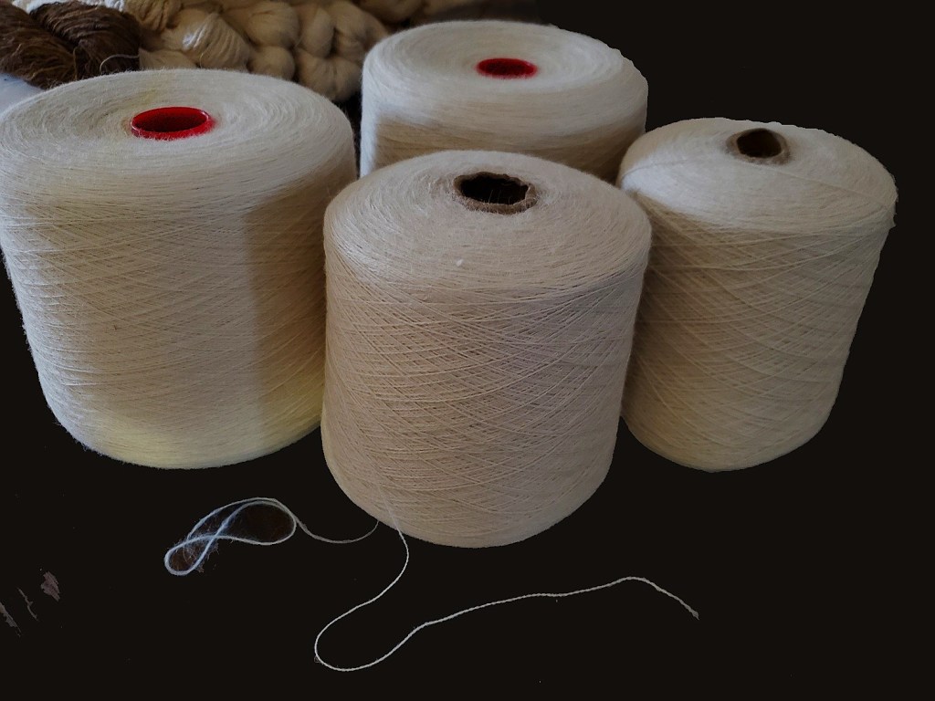 “The alpacas are divided into two breeds: Suri and Huacaya. The major difference lies in the fiber. Huacaya alpaca is the most common and makes up approximately 90% of the alpaca population. Their fiber is crimped and warmer to the touch, and grows outwardly from the body giving huacaya a teddy bear like appearance. The Suri alpaca are less common with silk-like locks draping down their body creating an elegant flowing movement when they walk. Their fiber is valued for its high degree of luster and cool hand lending itself to producing luxurious woven textile goods.”